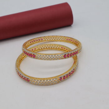 Golden Base Ruby Stone Cz Bangle Set