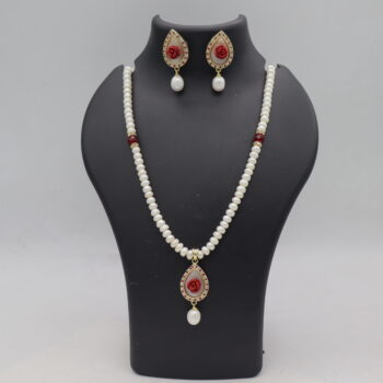 1Layer Butten Pearl Necklace (Red Stone Pendent)