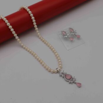 - Light Pink St0ne Pendent Pearl Necklace.