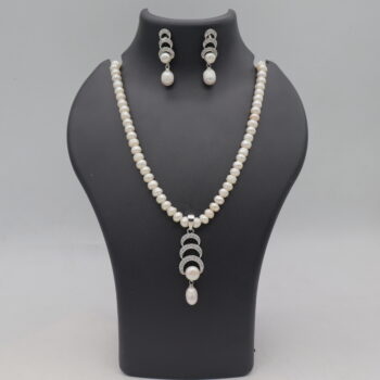 1Layer Ovel White Pearl Necklace Set