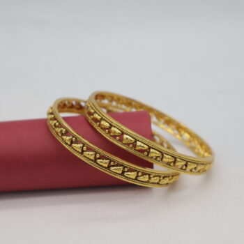 Add timeless elegance to your collection with this beautifully crafted Antique Gold Bangle. Designed with intricate traditional patterns and finished in a rich, aged golden tone, it captures the essence of classic beauty. Perfect for weddings, cultural events, or gifting, this bangle combines vintage charm with lasting qu