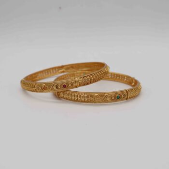 Add timeless elegance to your collection with this beautifully crafted Antique Gold Bangle. Designed with intricate traditional patterns and finished in a rich, aged golden tone, it captures the essence of classic beauty. Perfect for weddings, cultural events, or gifting, this bangle combines vintage charm with lasting qu