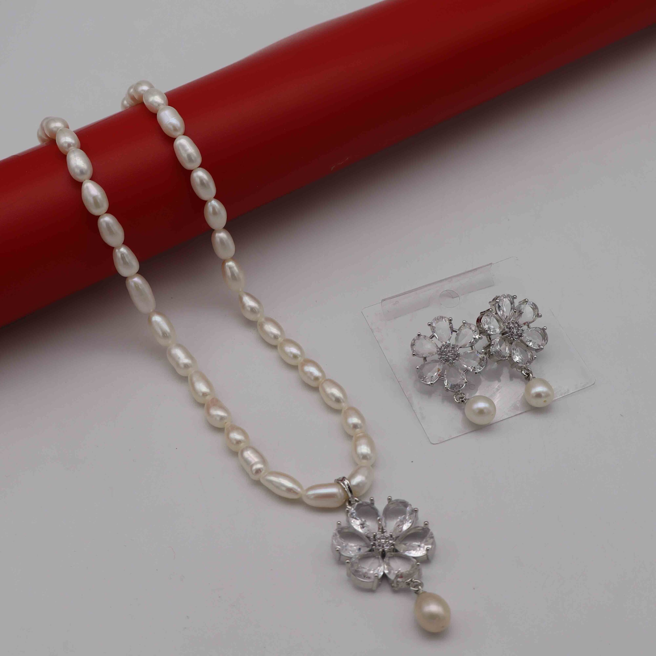 1Layer Ovel Pearl Necklace White Stone Pendent Set