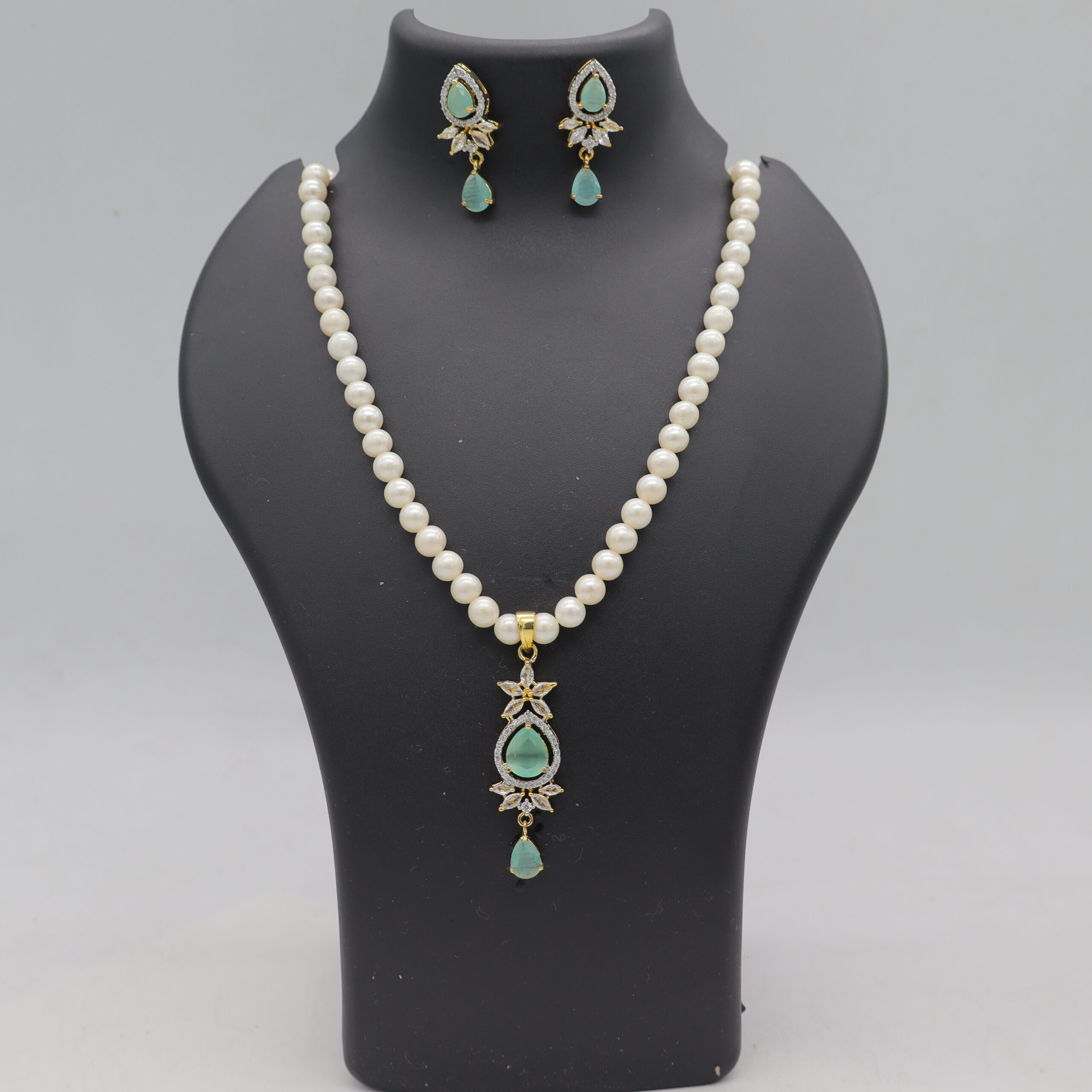 1Layer Round White Pearl Necklace Set