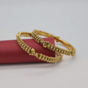 Add timeless elegance to your collection with this beautifully crafted Antique Gold Bangle. Designed with intricate traditional patterns and finished in a rich, aged golden tone, it captures the essence of classic beauty. Perfect for weddings, cultural events, or gifting, this bangle combines vintage charm with lasting qu