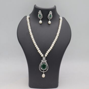 Light Green & Light Pink Mix Stone Cz Necklace Set