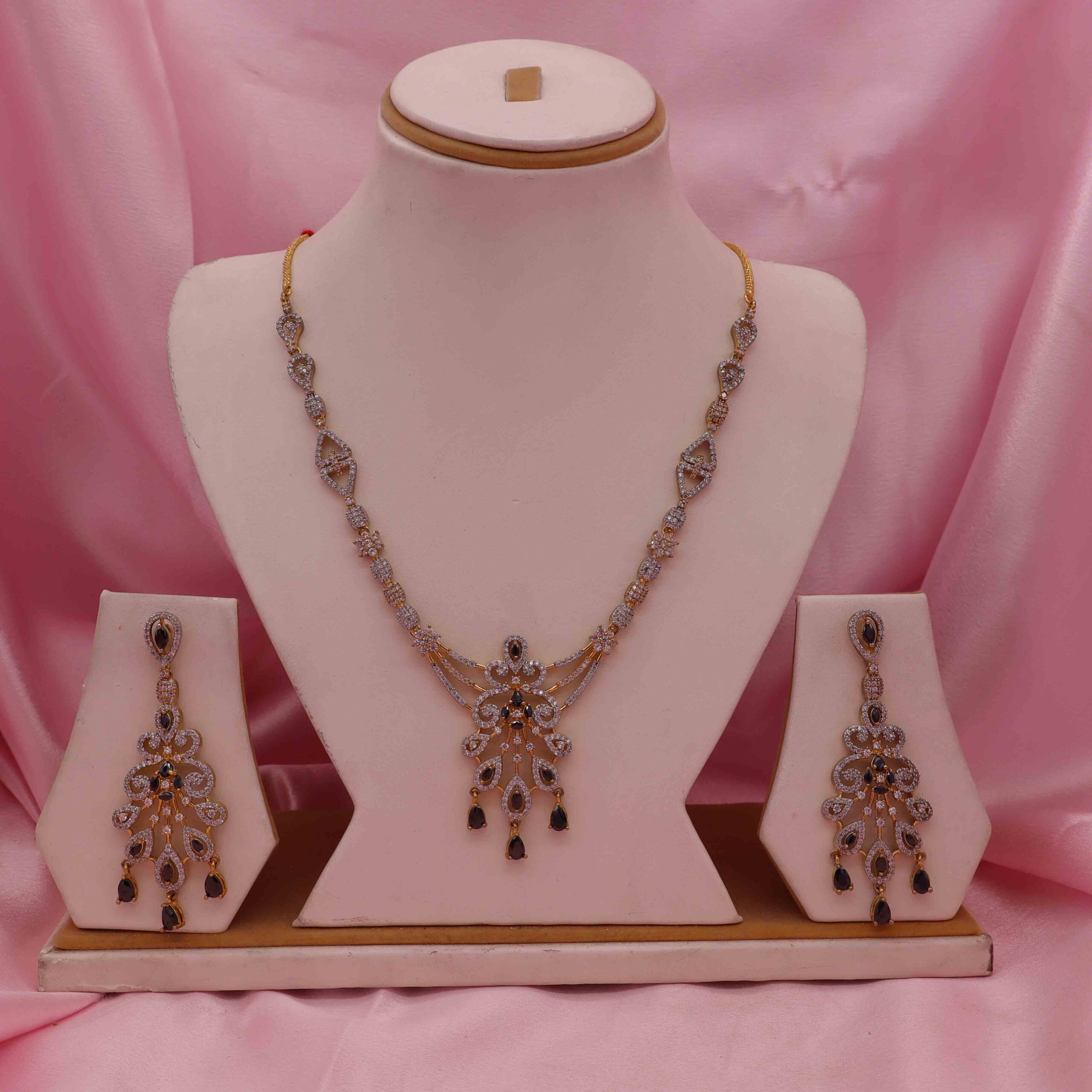 Black Stone Cz Necklace Set