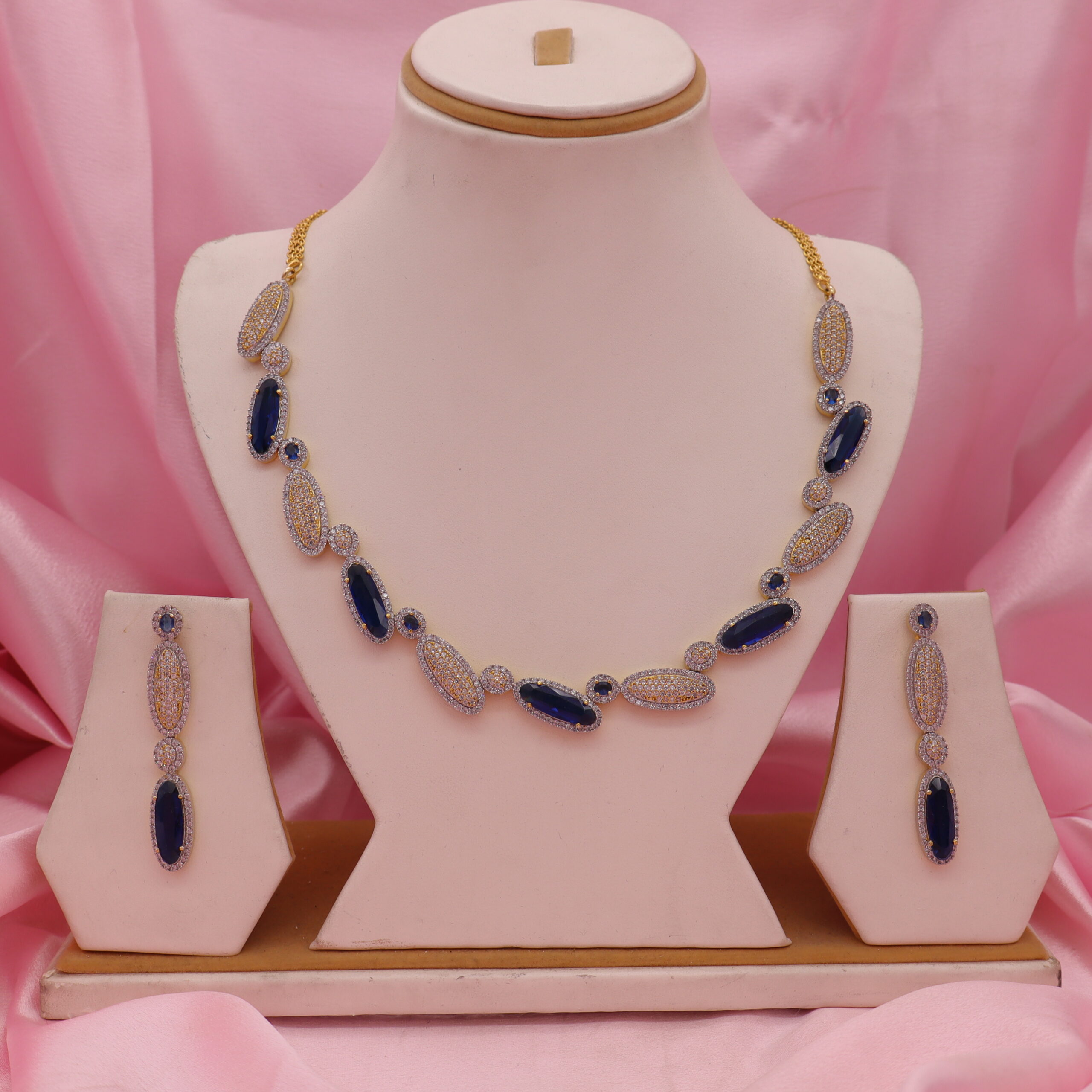 Blue Stone Cz Necklace Set