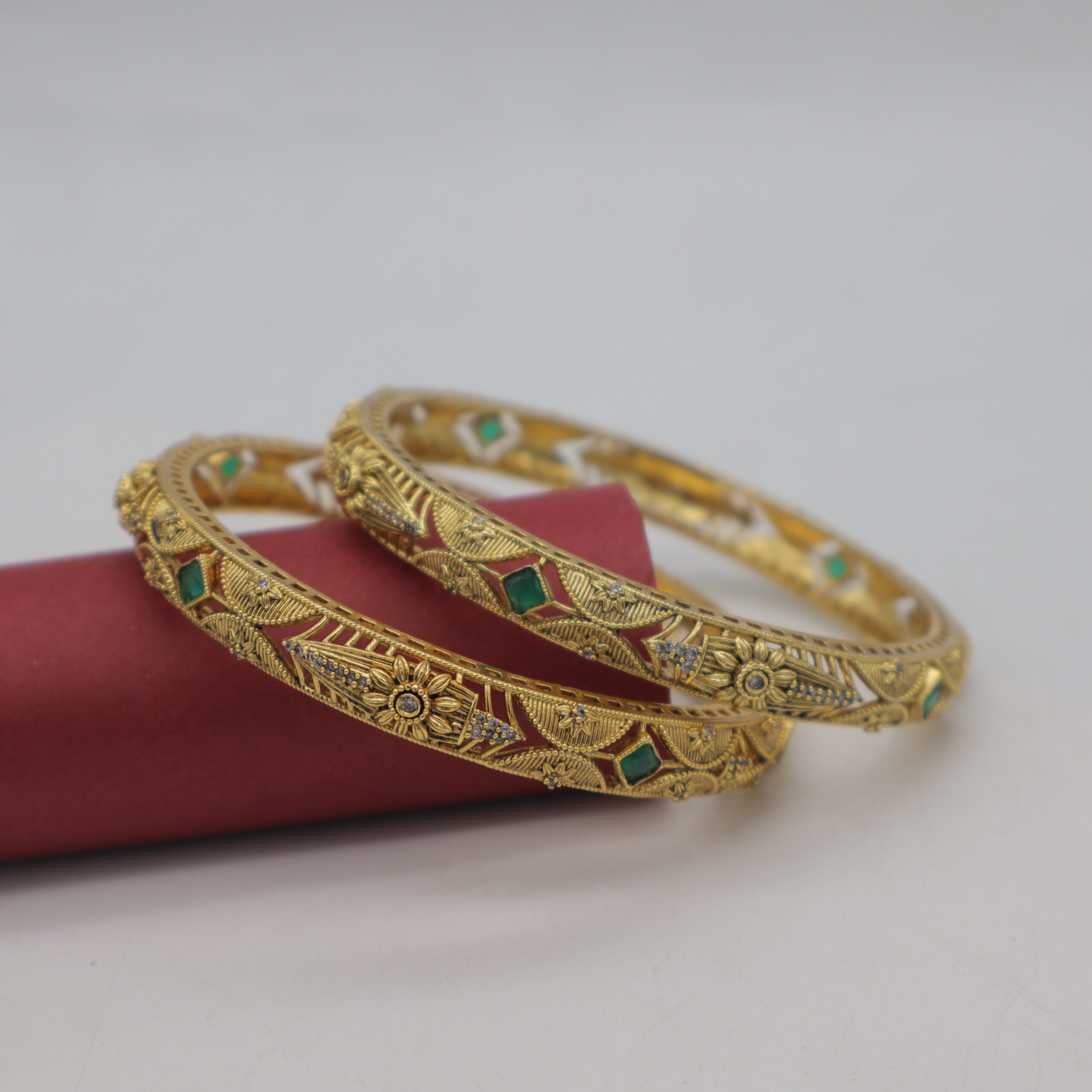 Add timeless elegance to your collection with this beautifully crafted Antique Gold Bangle. Designed with intricate traditional patterns and finished in a rich, aged golden tone, it captures the essence of classic beauty. Perfect for weddings, cultural events, or gifting, this bangle combines vintage charm with lasting qu
