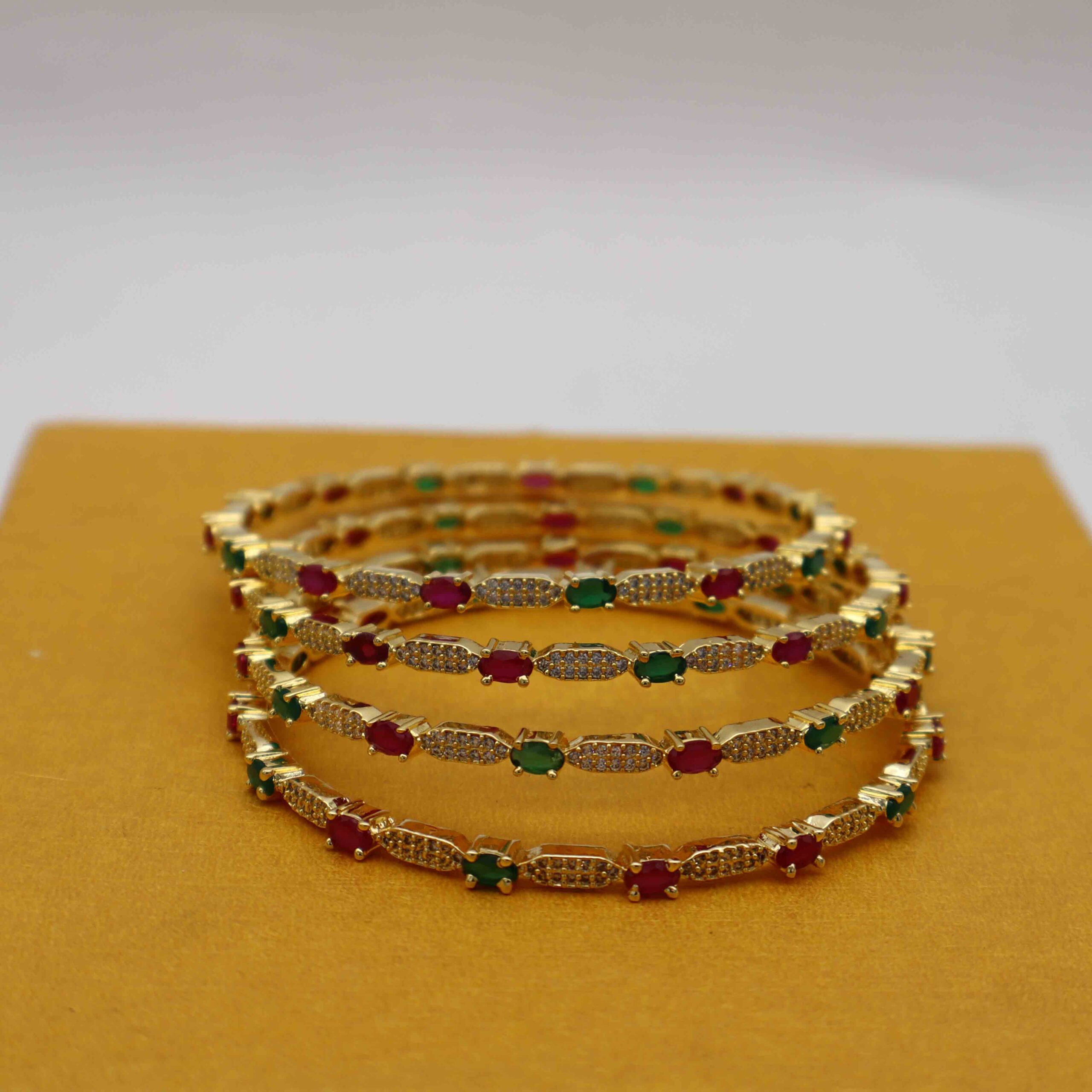 Emerald & Ruby Stone Mix Stone Cz Bangle