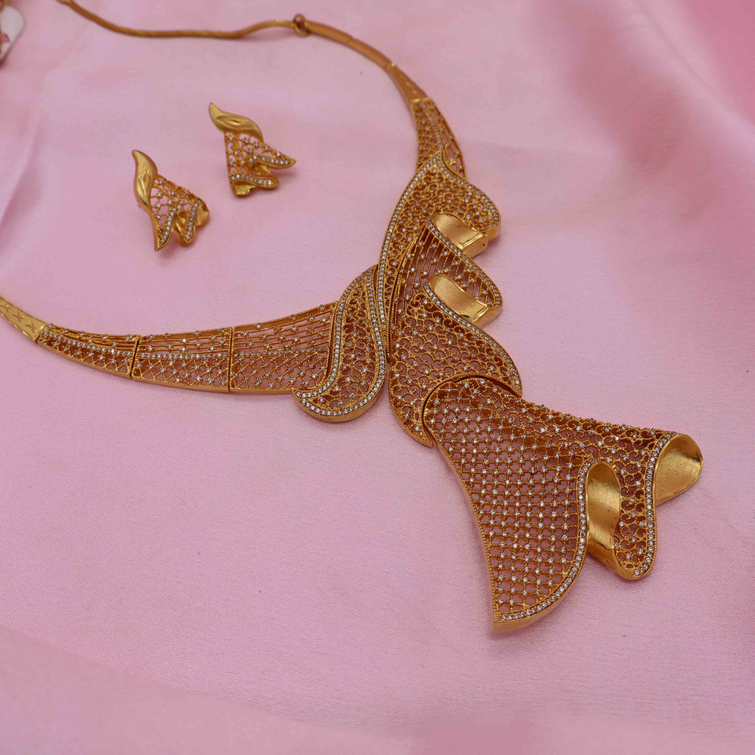Golden Base Cz Necklace Set