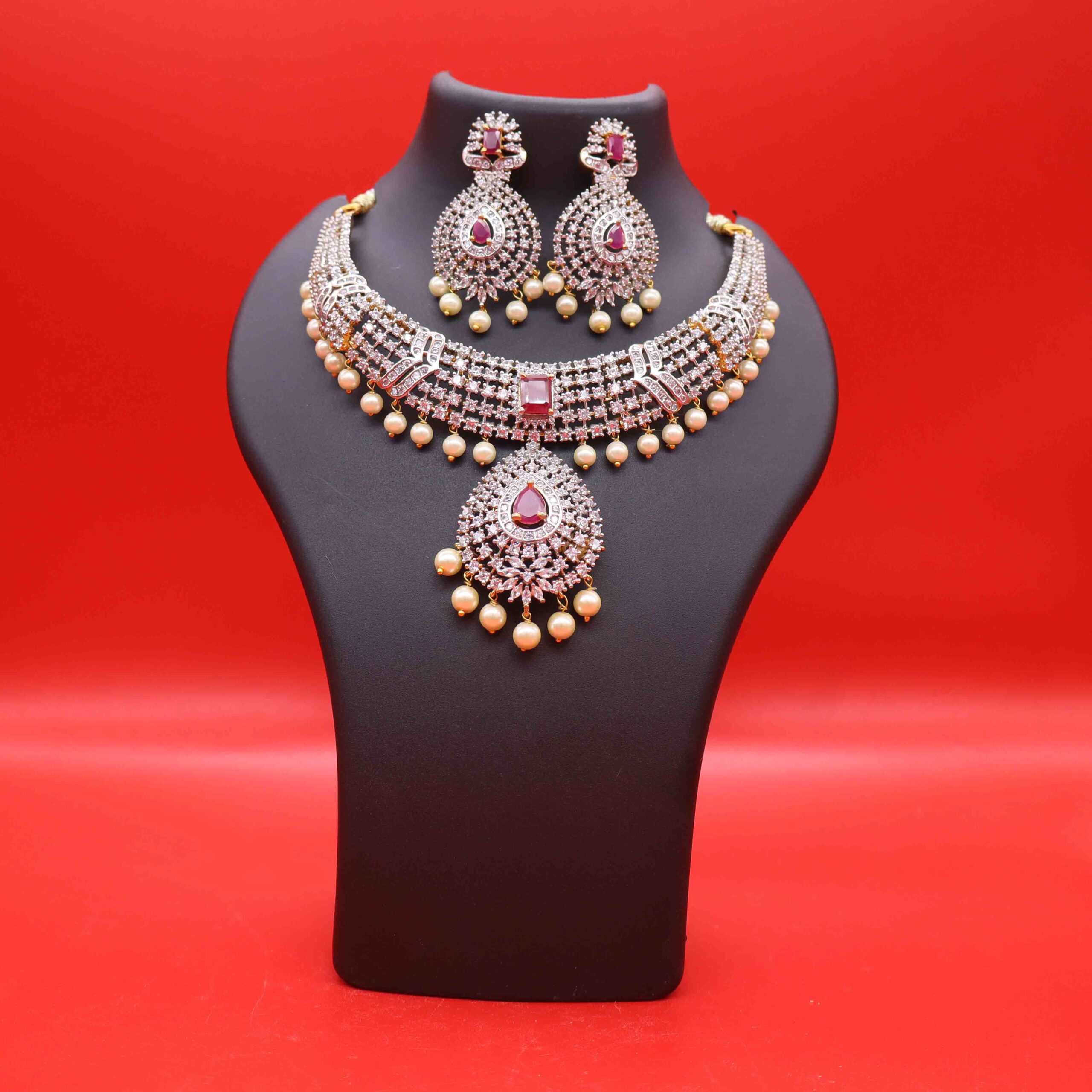 Ruby Stone Cz Necklace Set