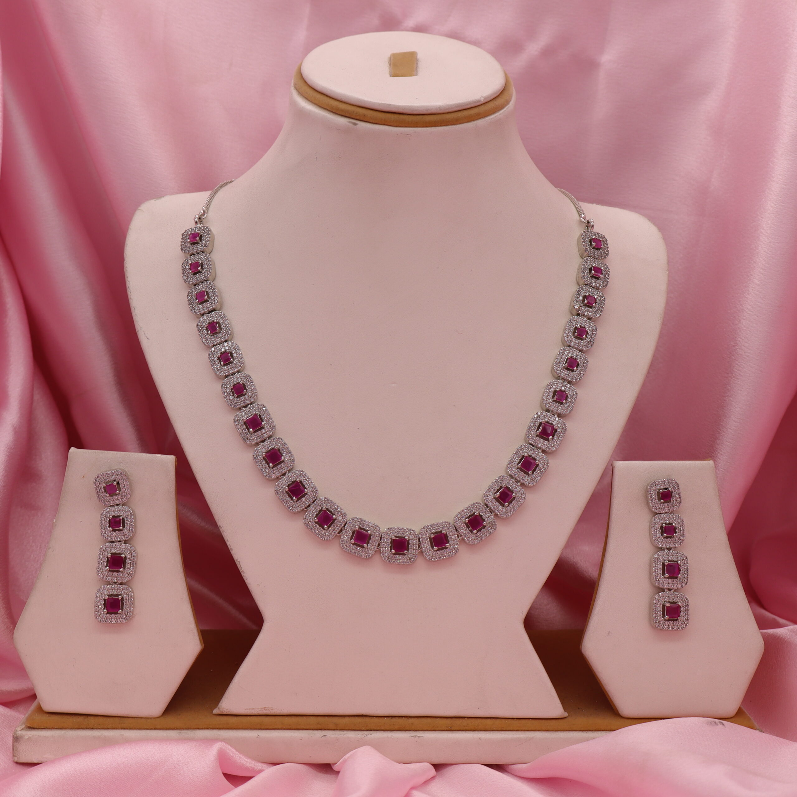 Ruby Stone Cz Necklace Set