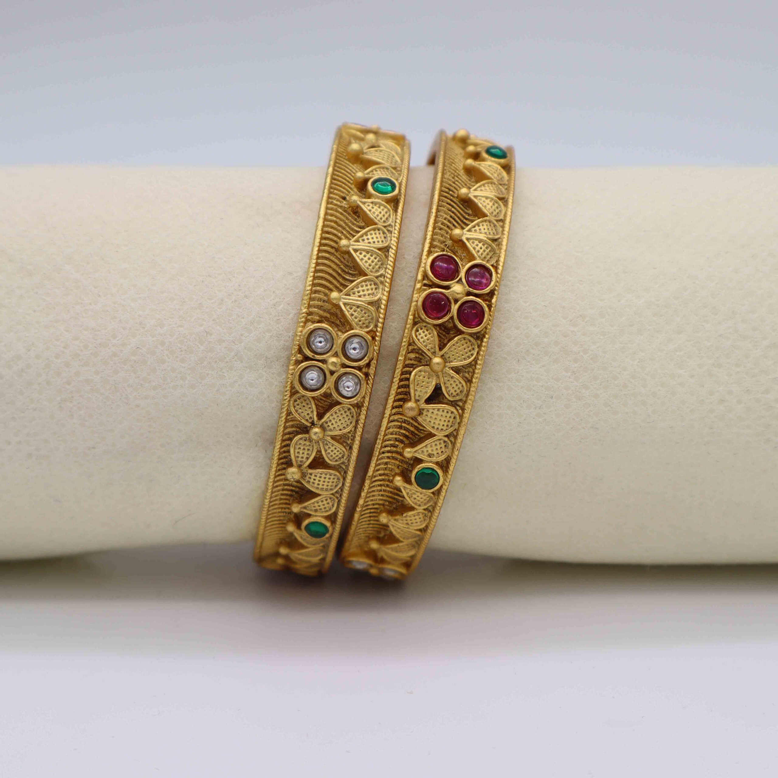 White, Ruby,Panna Stone Mix Antique Bangle